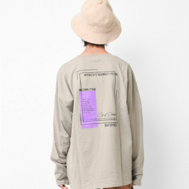 5. [ラットエフェクト] ネオンプリント ロングTシャツ グレー