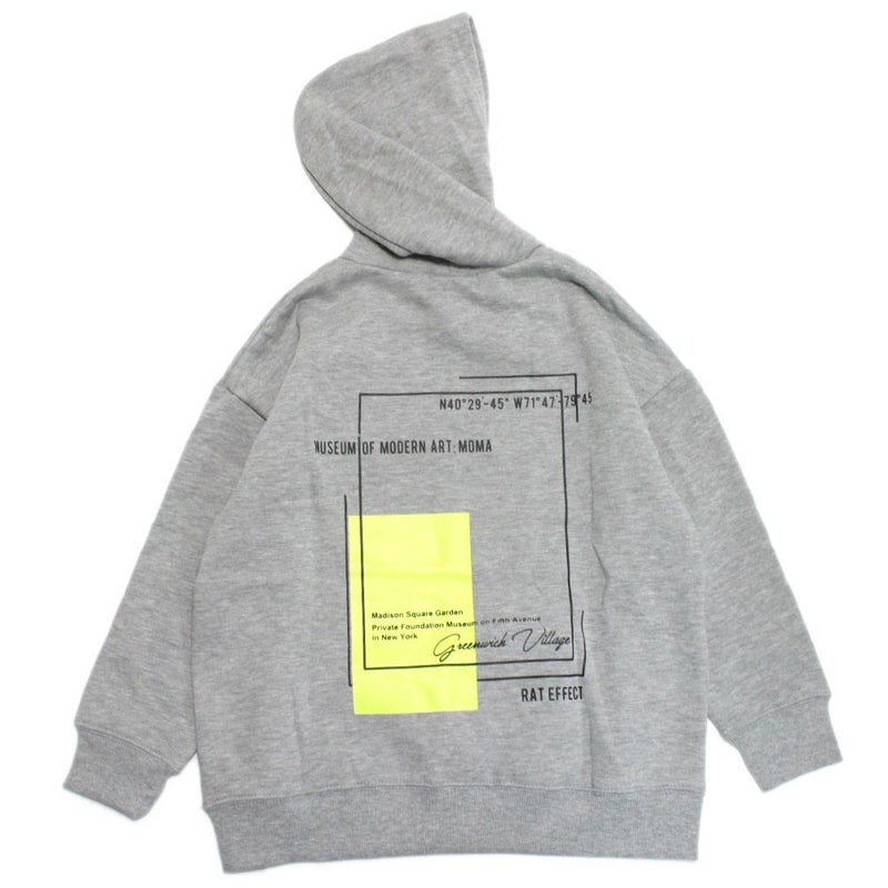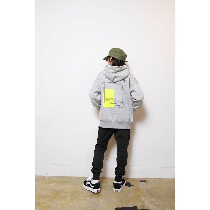 [ラットエフェクト] バックネオンプリントフーディー 杢グレー