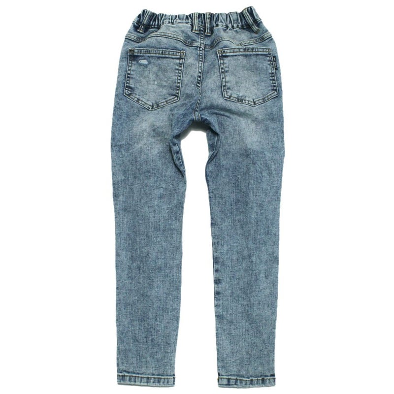 “ラットエフェクト”のケミカル加工デニムスリムストレートパンツ