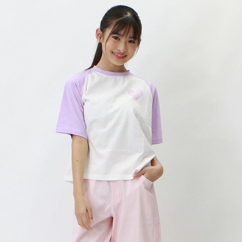 [リコシュクレ] ショート丈ハートロゴラグランT ラベンダー