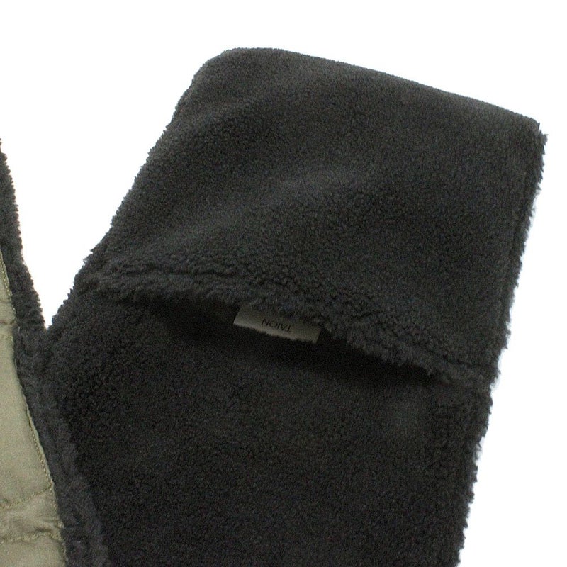 表側にミリタリー生地+ダウン、裏側にはボア素材。