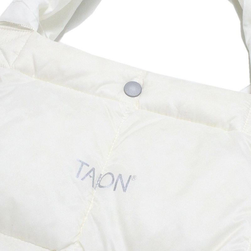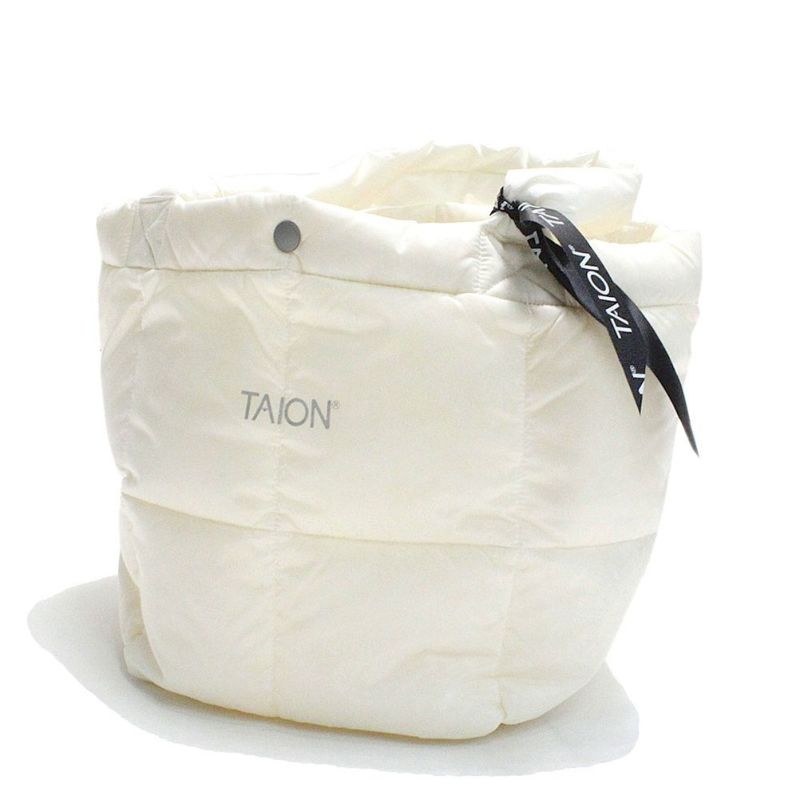 中央のTAIONロゴプリントがアクセントになったダウントートバッグ。