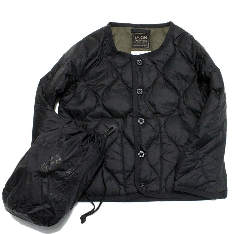 [タイオン] ミリタリー クルーネックボタン ダウンジャケット ブラック(BLK)