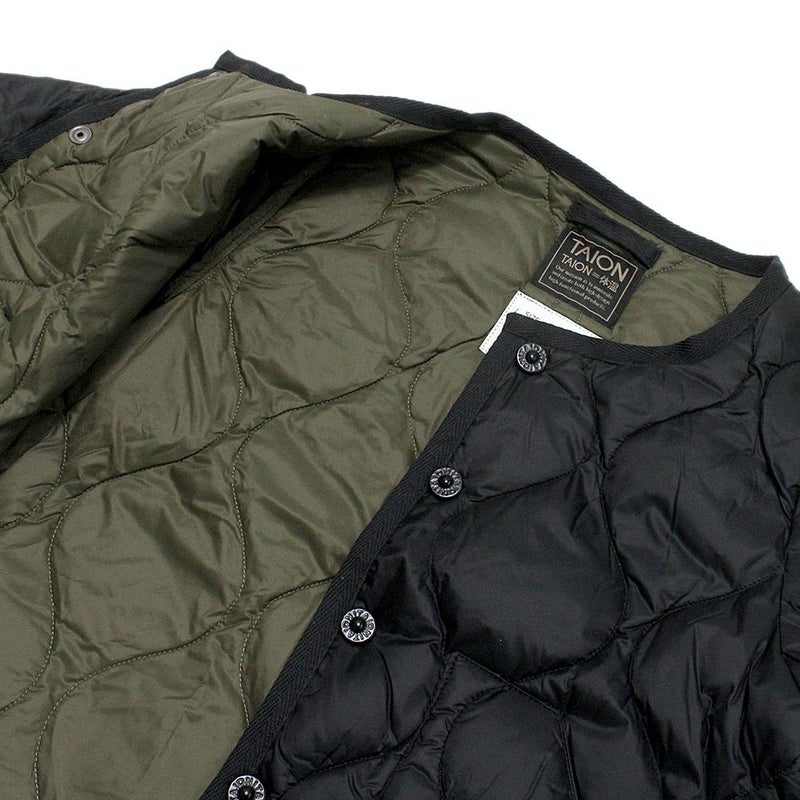 6. [タイオン] ミリタリー クルーネックボタン ダウンジャケット ブラック(BLK)