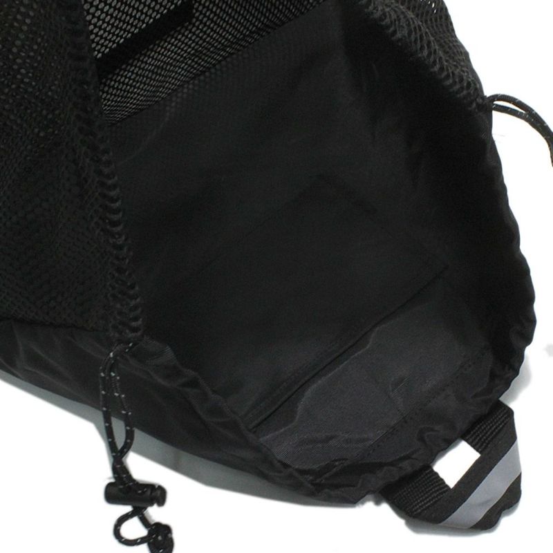 汚れたものを入れても洗いやすいメッシュ素材のナップサック。
