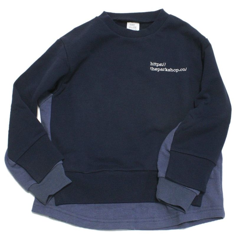サーマルとスウェットを重ね着しているようなクルーネック。