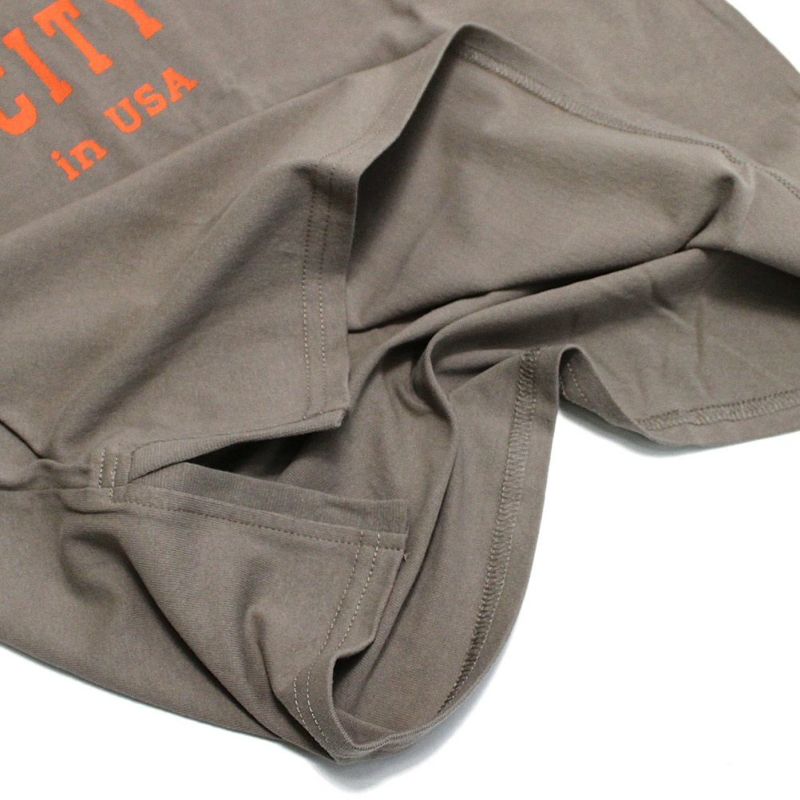 カレッジロゴが目を引くTシャツ。