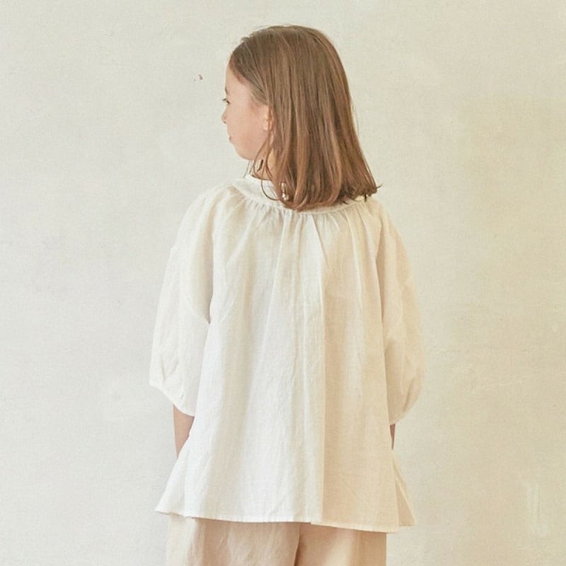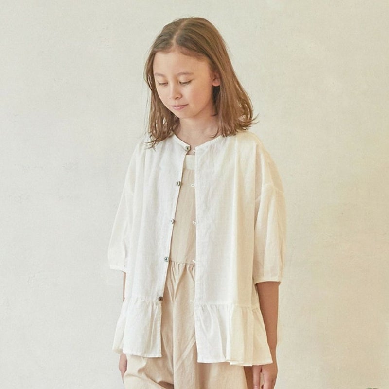 裾のフリルがガーリーなブラウス。
