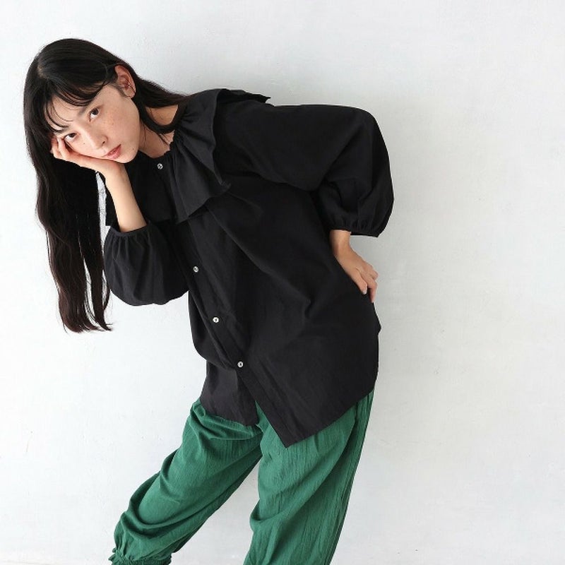 襟周りのフリルがチャーミングなブラウス。