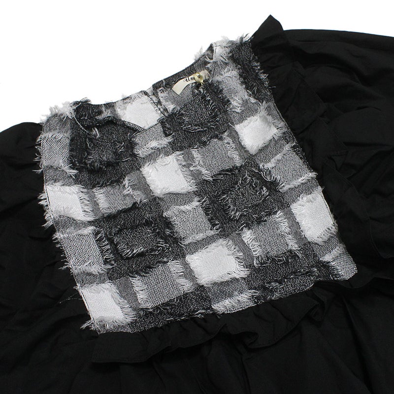 5. [ユニカ] フリンジドルマンスリーブワンピース ブラック×オフホワイト(44)