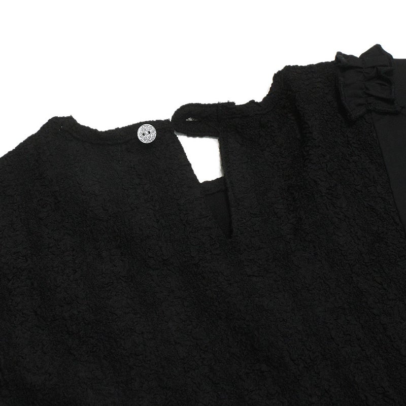 異なる素材を組み合わせた個性的なブラウス。