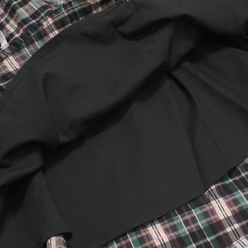 生地感の異なるふたつのチェックを組み合わせたスカート。