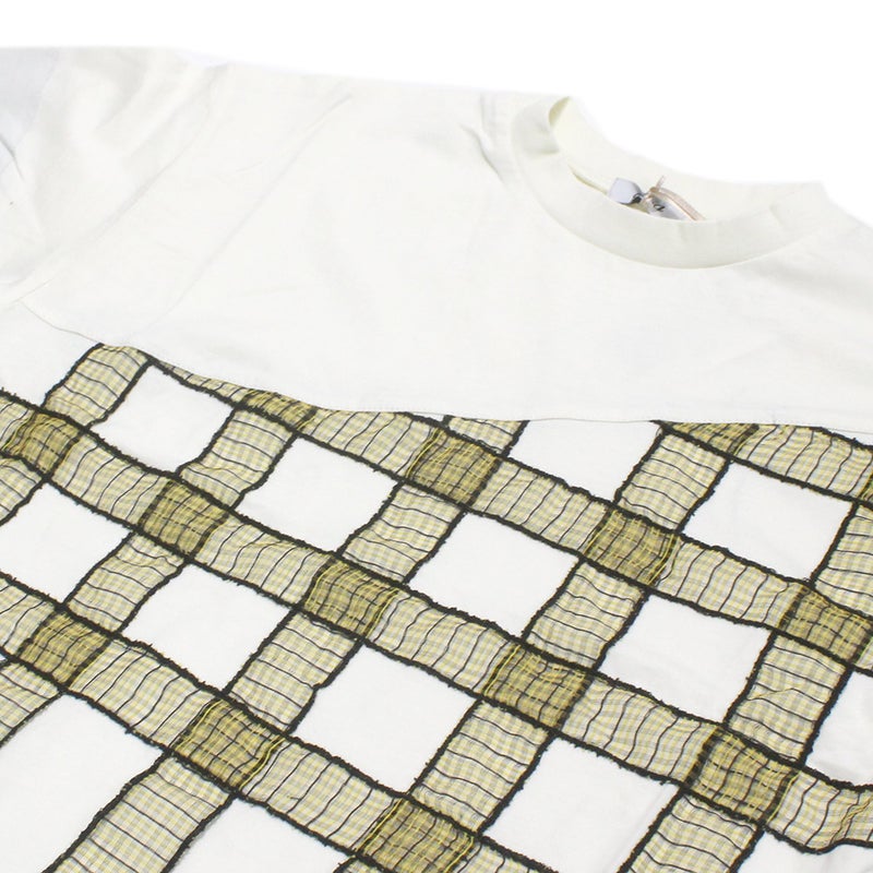 [ユニカ] チェックテープTシャツ オフホワイト×イエロー(28)