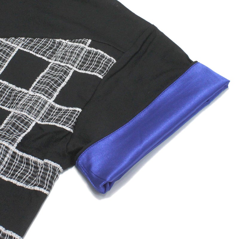 6. [ユニカ] チェックテープTシャツ ブラック×オフホワイト(54)
