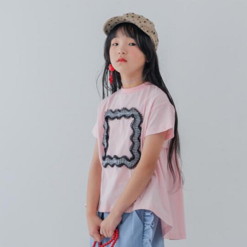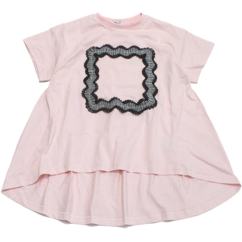 前身頃に大きく配置したスクエア型のフレームデザインが目を引く半袖カットソー。