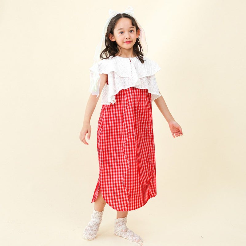 ギンガムチェックの総柄がインパクト大のワンピース。