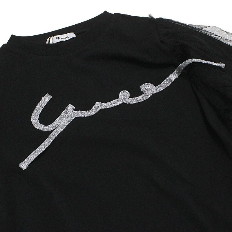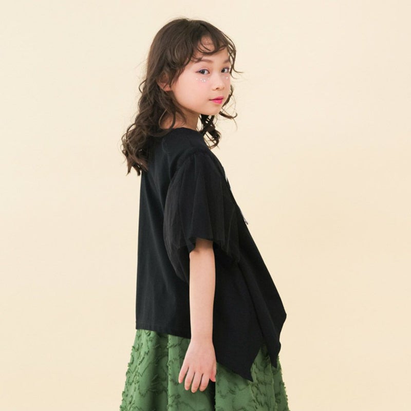袖に柔らかなチュールを重ねることで、ガーリーな要素をプラス。