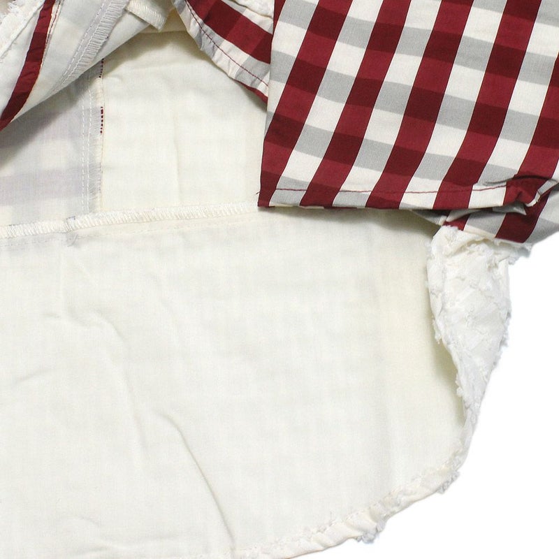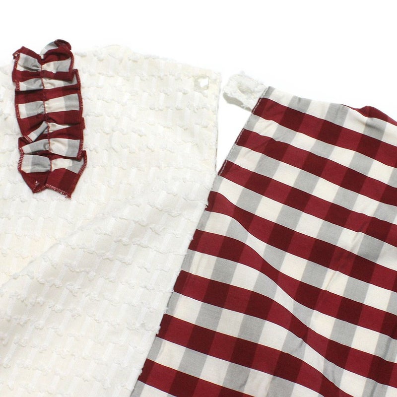 ポップで元気な印象のブロックチェックも、異素材の生地と組み合わせることでガーリーな雰囲気に。