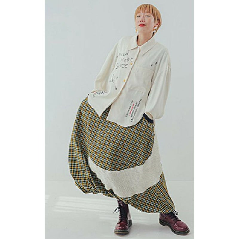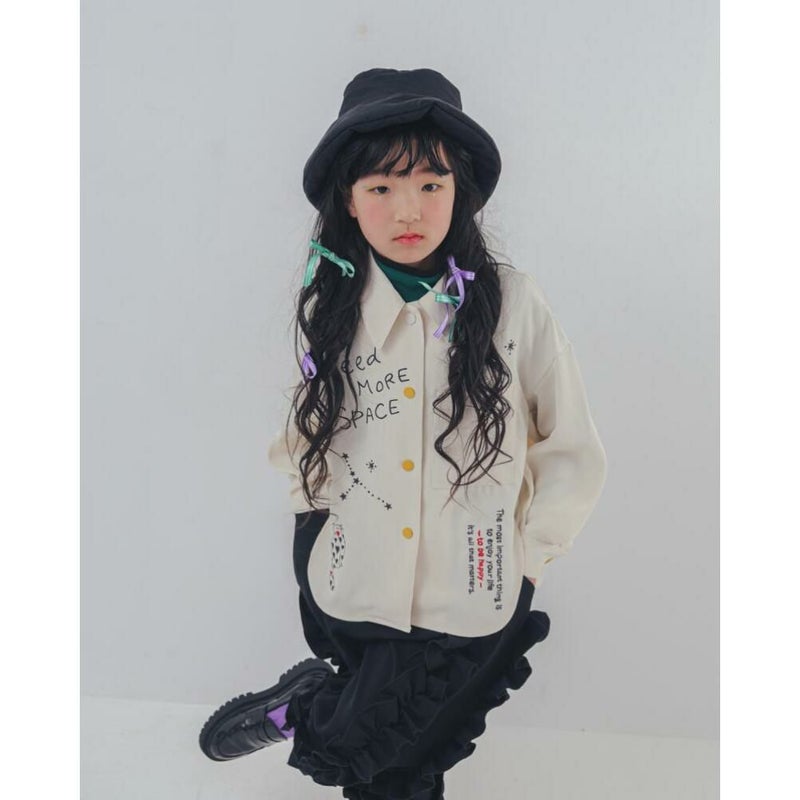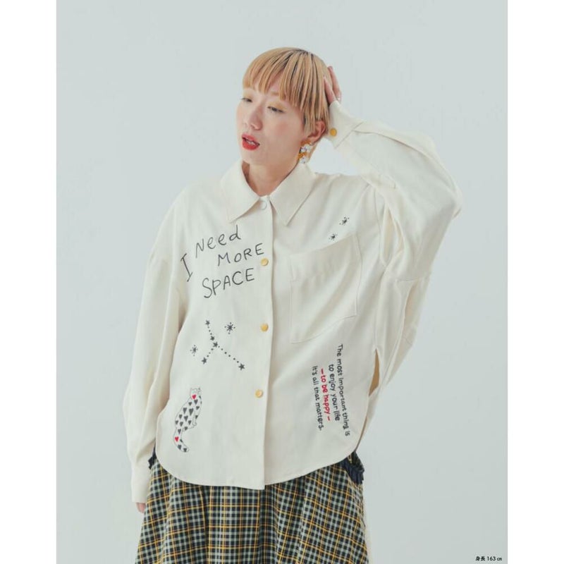 きちんと感のある角襟と、刺繍でラフに描かれた星空や英字が心地良いアンバランスのシャツ。