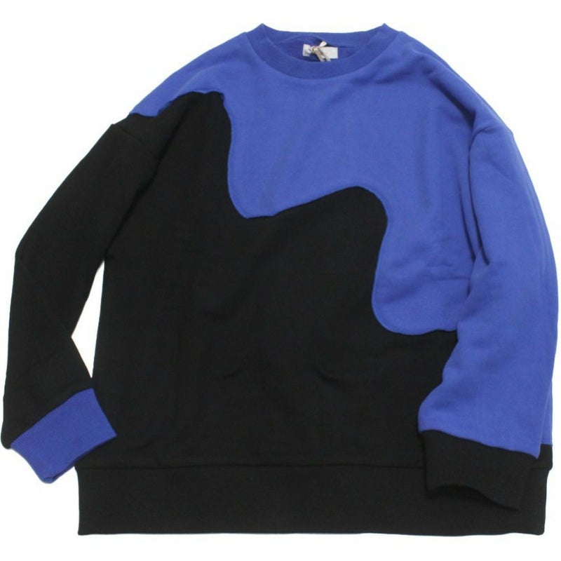 夜の帳(とばり)が次第に降りていくような、とろりとしたウェーブによる色の切り替えが大胆なトレーナーです。