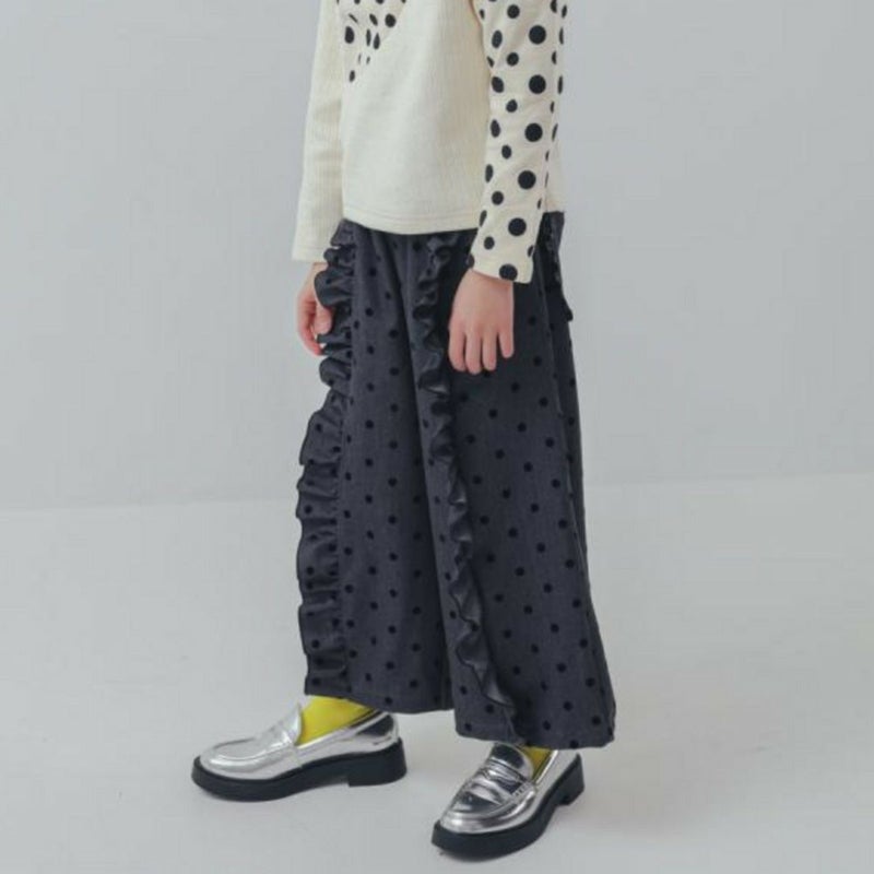 “ユニカ”のフロッキードットフリルワイドパンツ