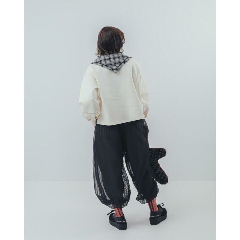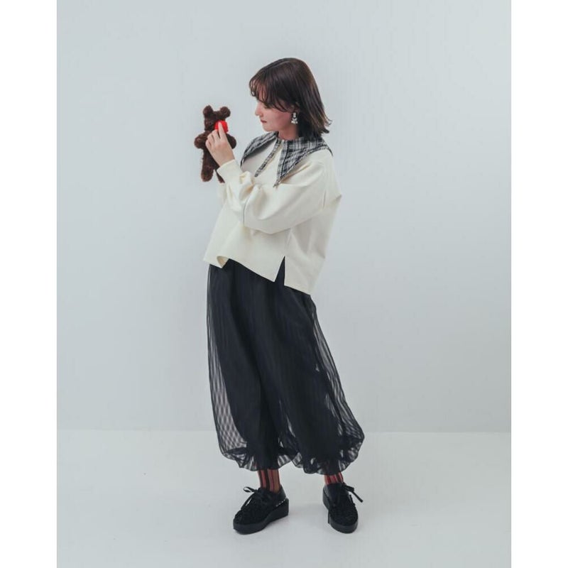 シアー感のあるストライプ生地を重ねることで、ふわふわとしたボリュームと立体感を加えました。