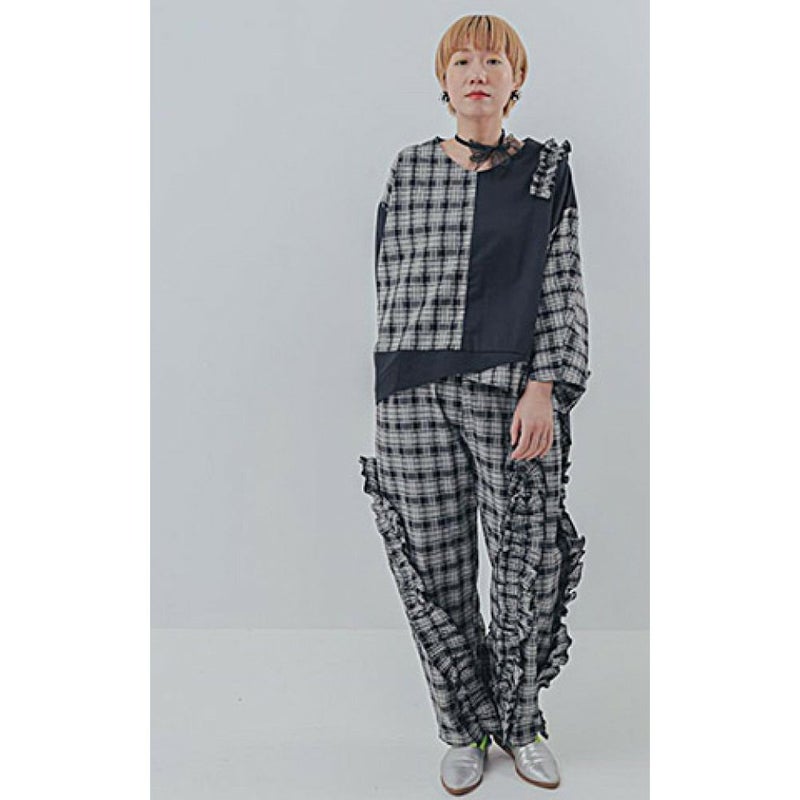 “ユニカ”のチェックアシメフリルパンツ