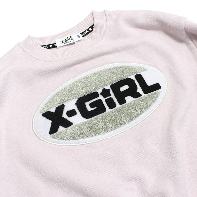 “エックスガールステージズ”のサガラ刺繍オーバルロゴ配置トレーナー