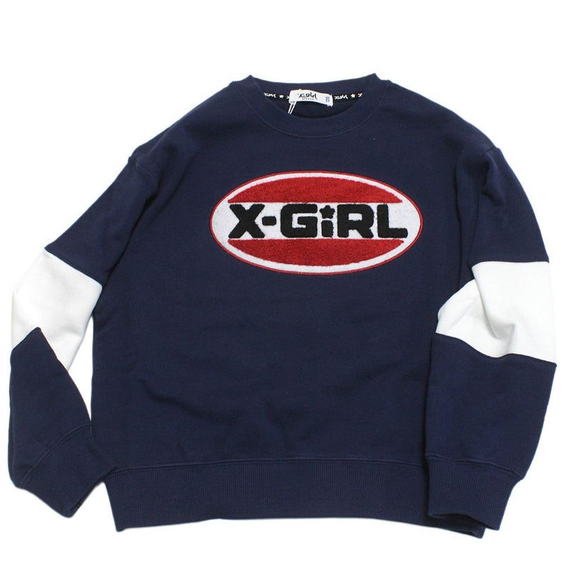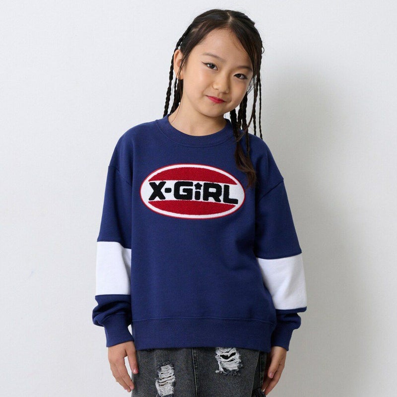 “エックスガールステージズ”のサガラ刺繍オーバルロゴ配置トレーナー