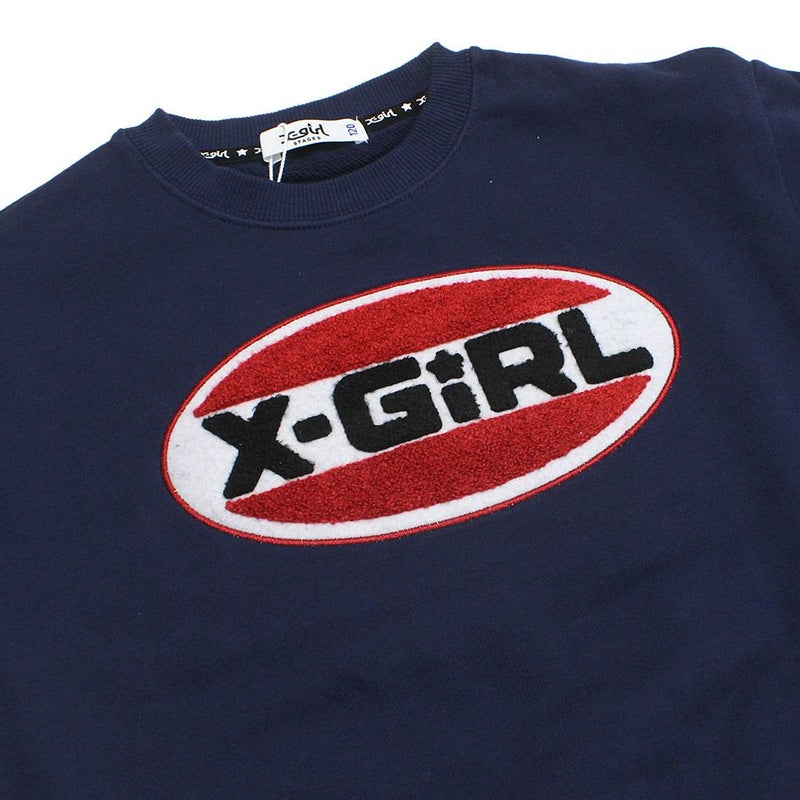 5. [エックスガールステージズ] サガラ刺繍オーバルロゴ配置トレーナー コン(50)