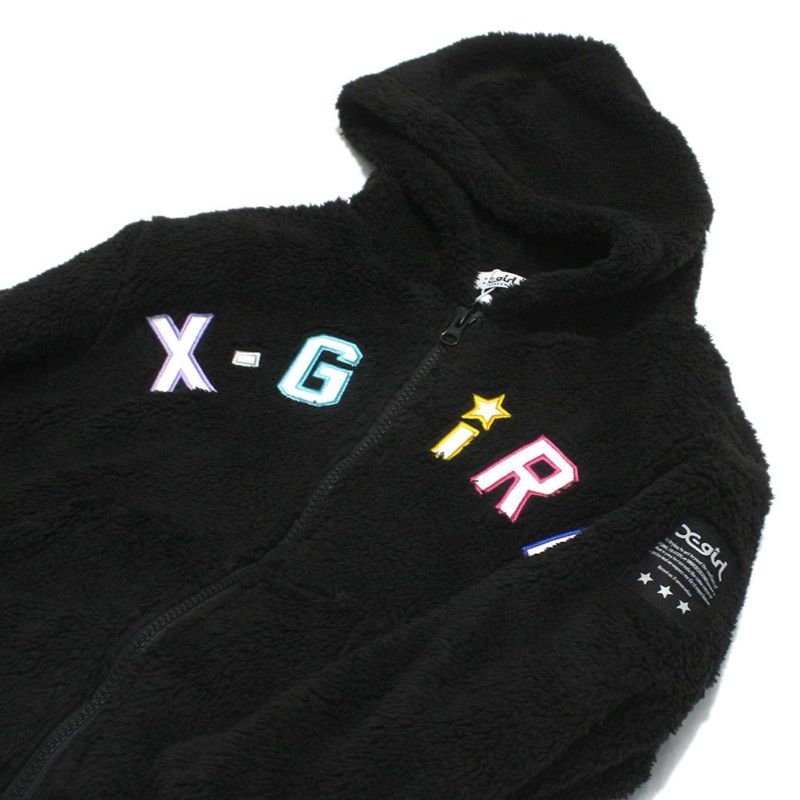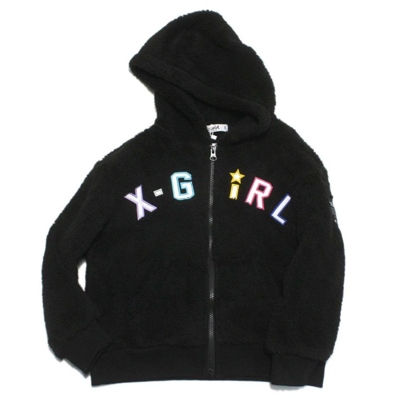 “エックスガールステージズ”のロゴアップリケ刺繍フラッフィージップパーカー