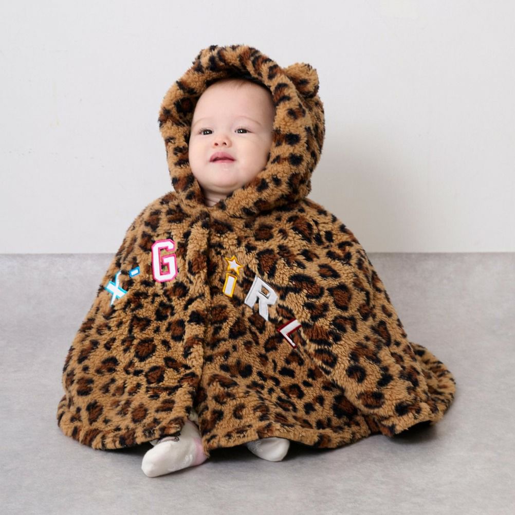 やわらかく手触りが良いフラッフィー素材のベビーポンチョです。