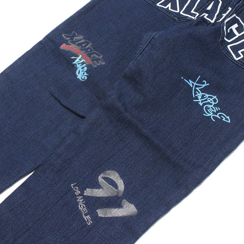 ストレッチのきいたカットデニムにさまざまなグラフィティロゴをプリントしたパンツです。