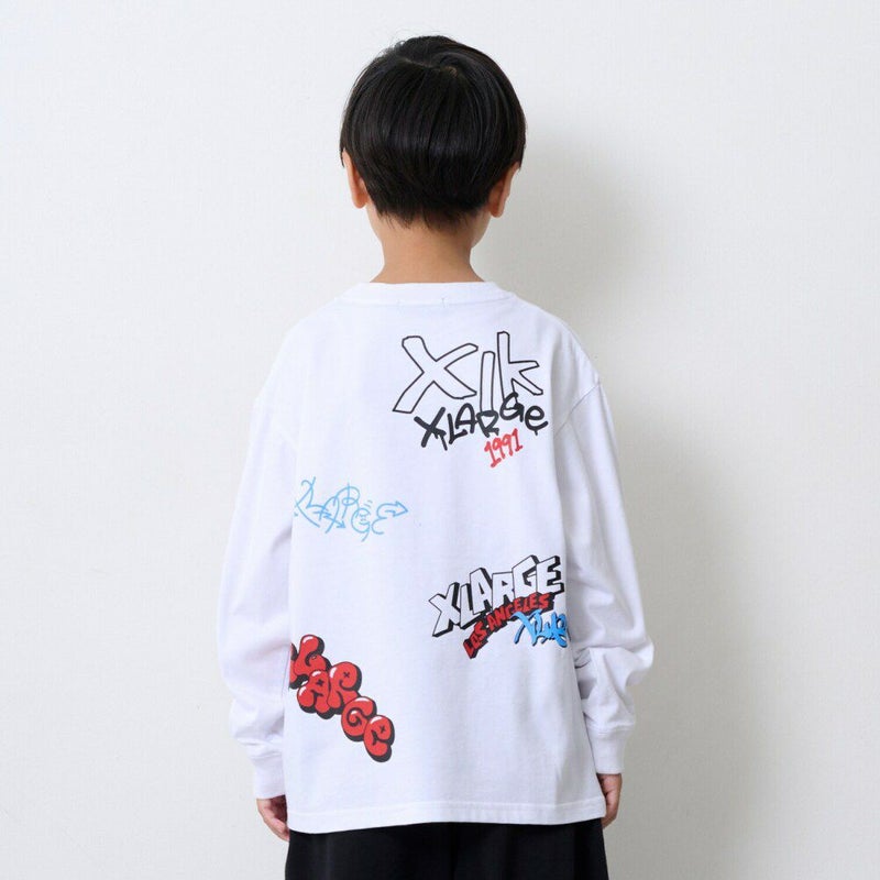 [エクストララージキッズ] 総柄グラフィティ長袖Tシャツ シロ(01)