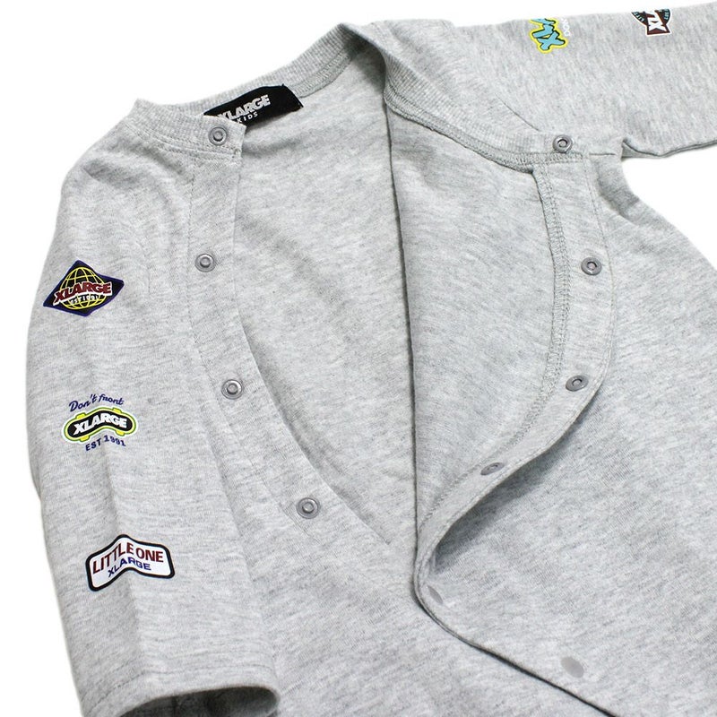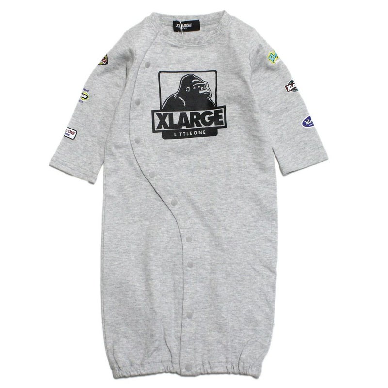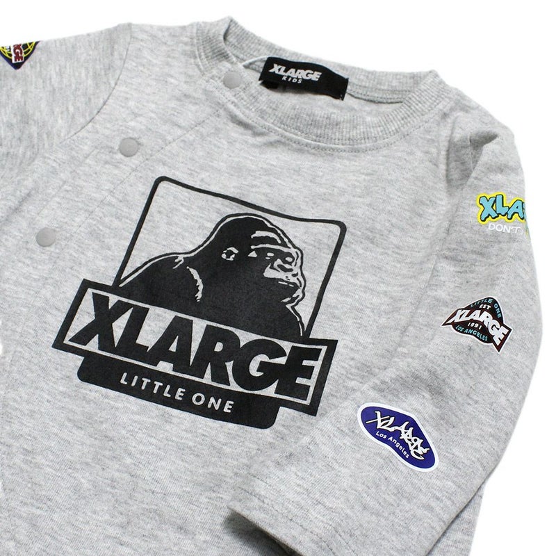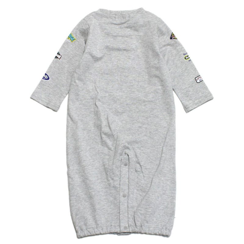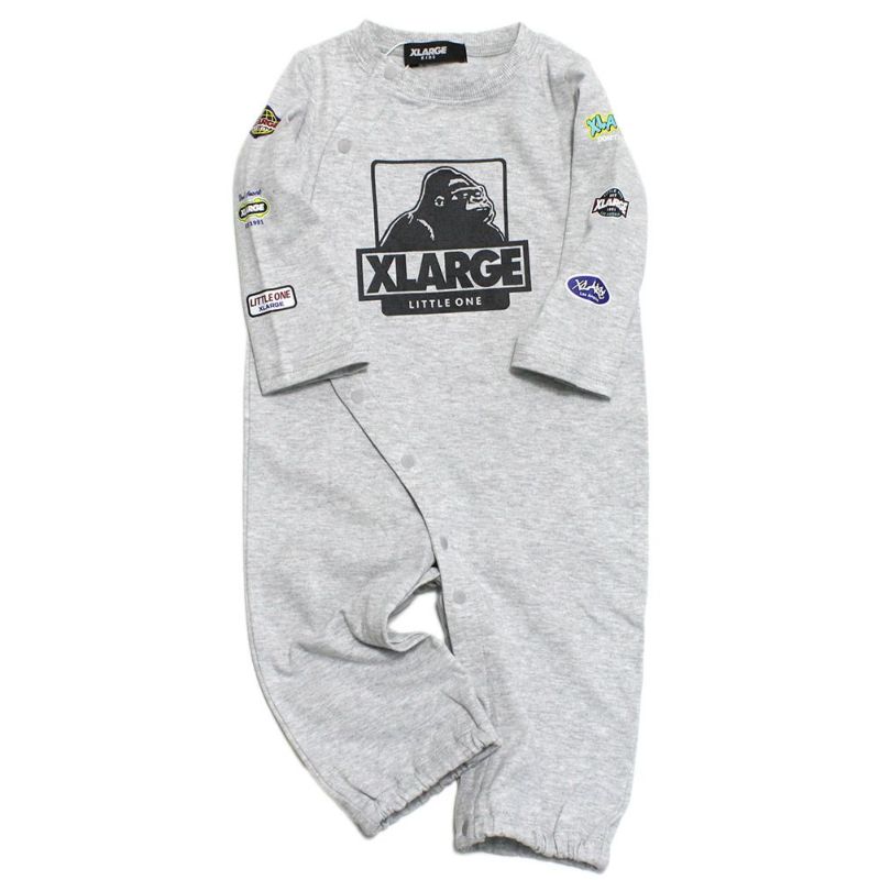 7. [エクストララージキッズ] 袖ロゴワッペン風プリントOG長袖カバーオール TOP・グレー(85)