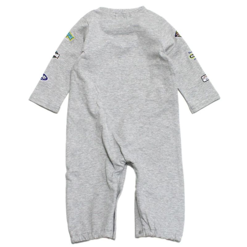 5. [エクストララージキッズ] 袖ロゴワッペン風プリントOG長袖カバーオール TOP・グレー(85)
