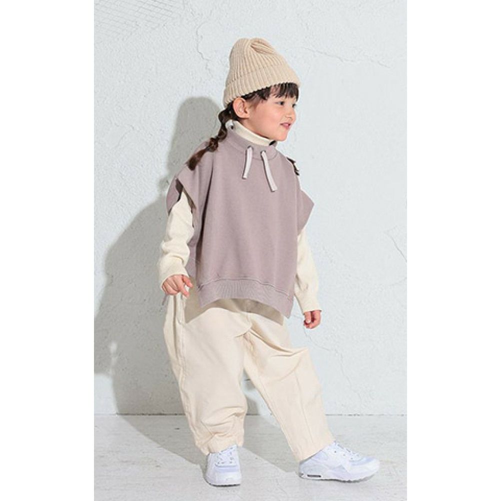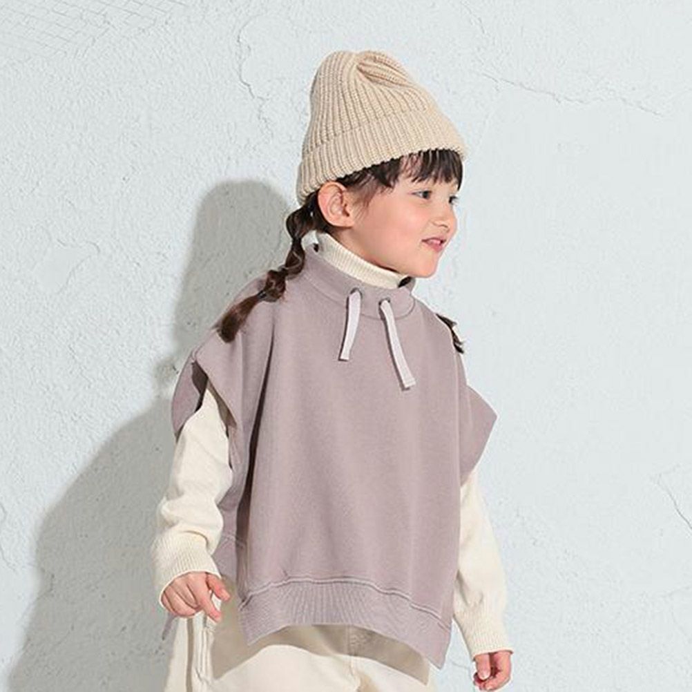 肩落ちのワイドシルエットに遊びのあるサイドアーチが着映えするモックネックベスト。