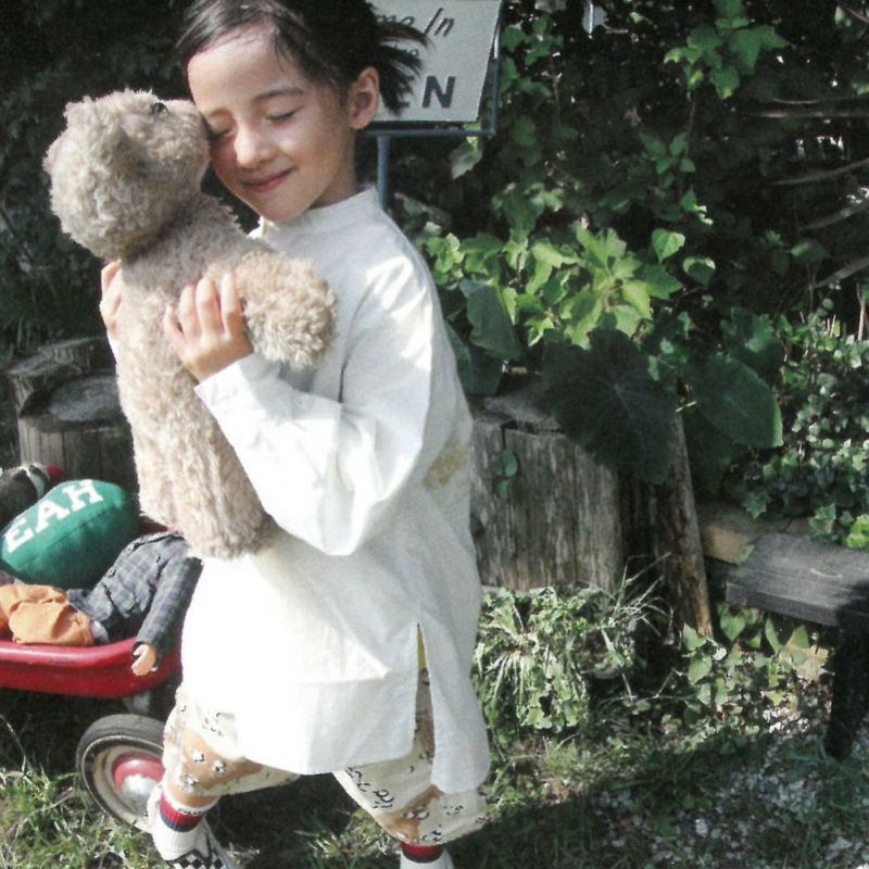 バックにはヨーク切替にギャザーデザインを施し、あたたかみを感じる落書きプリントを。