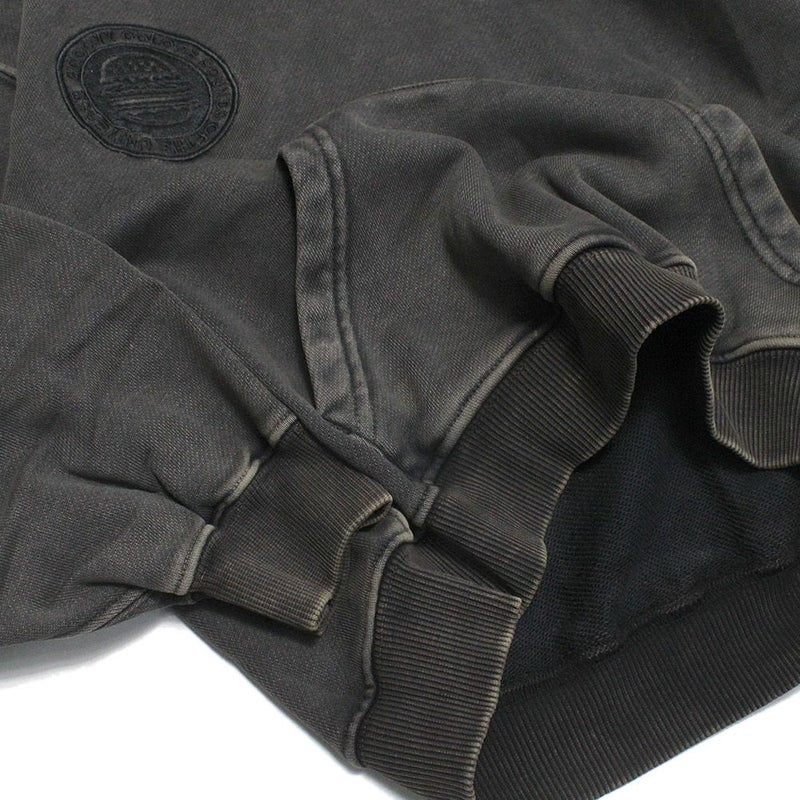 顔料染め+色落とし加工を施したオーバーダイシリーズのフ-ディ。