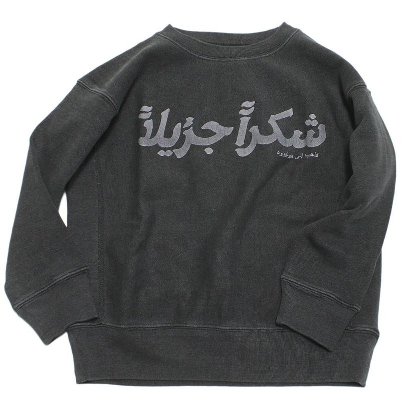 それぞれのボディーにアラビア語、英語、タイ語のありがとうをプリントしたスウェット。