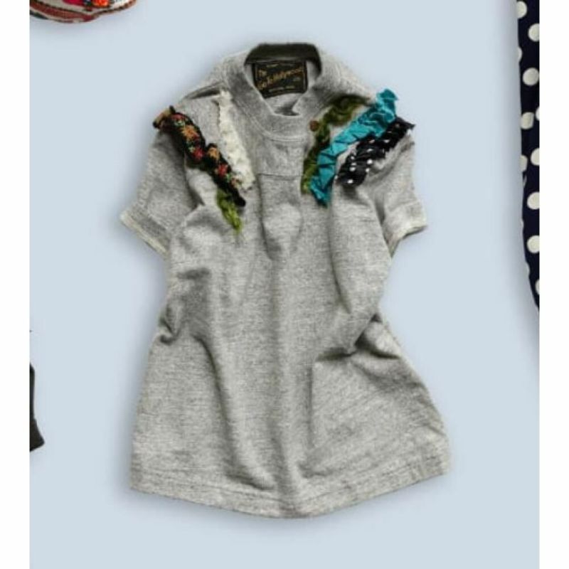 シンプルなフットボールTシャツに、フリルを叩き付け。