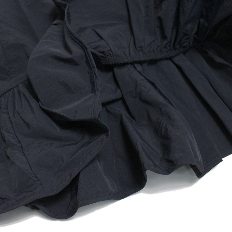 素材にはハリがあるコットンライクなナイロンリップ素材を使用することで、シルエットデザインが持つ甘さを上手に抑え、大人のシックな雰囲気に仕上げました。