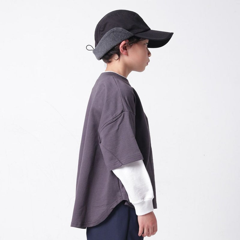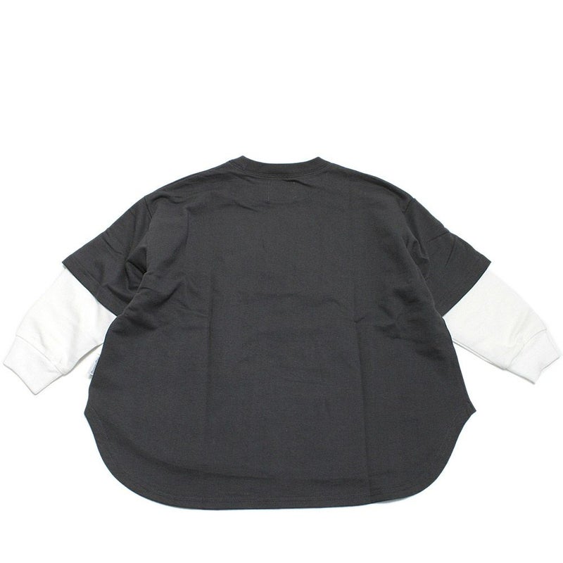 同素材でネックと袖部分を組み合わせたフェイクレイヤードデザイン。