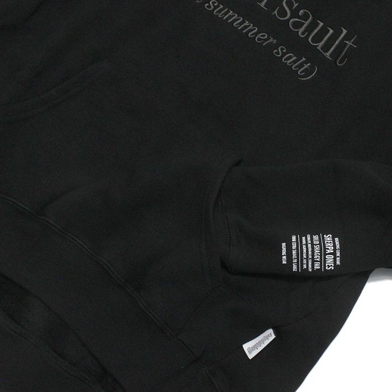 フード部分を配色の異素材にすることで、フェイクレイヤードデザインとしてのルックを印象づける独特な雰囲気に。