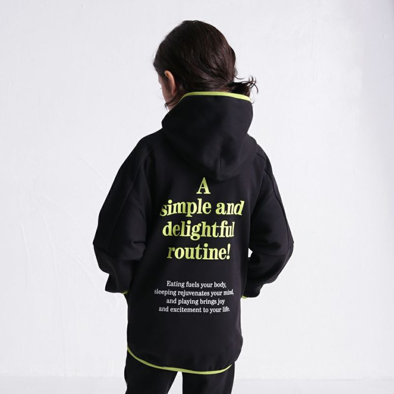大胆な切り替えとパイピングの配色が斬新なフーディー。