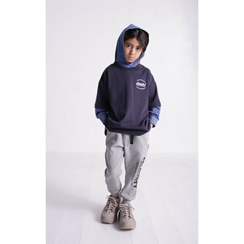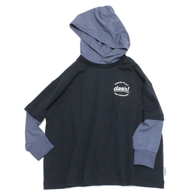 フェイクレイヤードデザインが特徴のプルオーバーフーディー。
