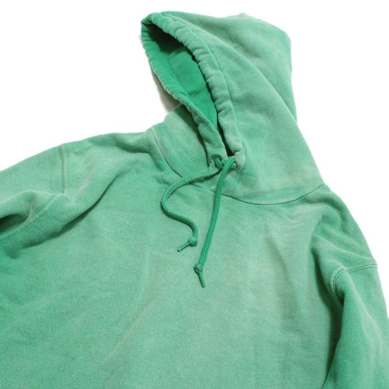 ヴィンテージ感漂う、本格的な色落ち加工を活かしたシンプルな無地パーカー。
