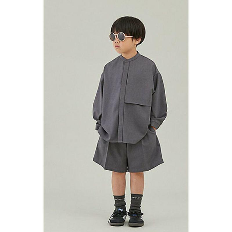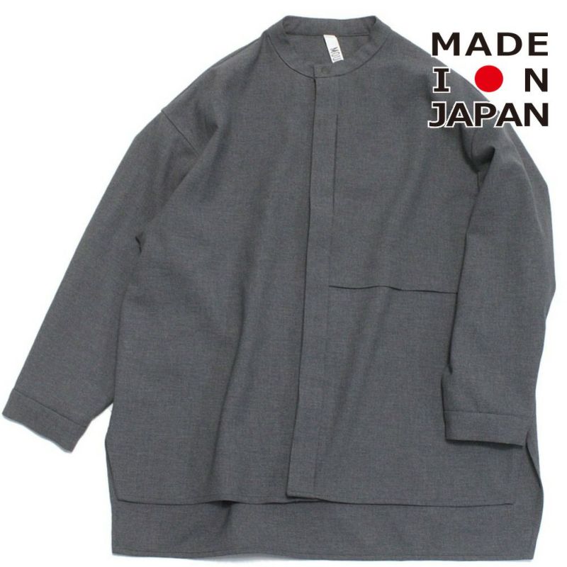 麻の様な風合いのバンドカラーシャツです。