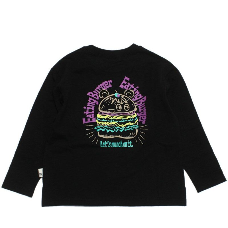 ハンバーガーをモチーフにしたポップなバックプリントが目を惹くロンT。