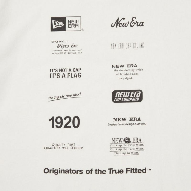 背面にニューエラがかつて使用したロゴ、タグラインを一覧配置。